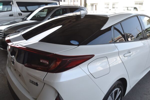 独特のガラス形状をしているプリウスPHVですが、熱成型は可能です。 最近はUVカットや赤外線カットのコーティングをガラス内側に施工しているガラスもあり、貼る時はそれに合わせた施工方法を行います。 PHV完成です。 一番濃..
