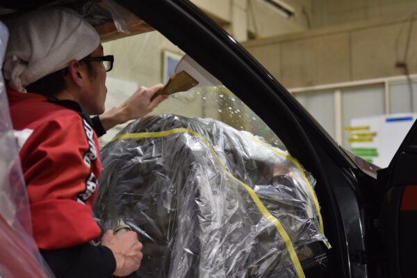 チリやホコリの混入を最小限にするために養生すると思われがちですが、実はそれだけではありません。 車内を濡らさないように、汚さないように、SIでは必要以上に養生を行います。 養生だけで1時間以上かけるので、同業者の方からは..