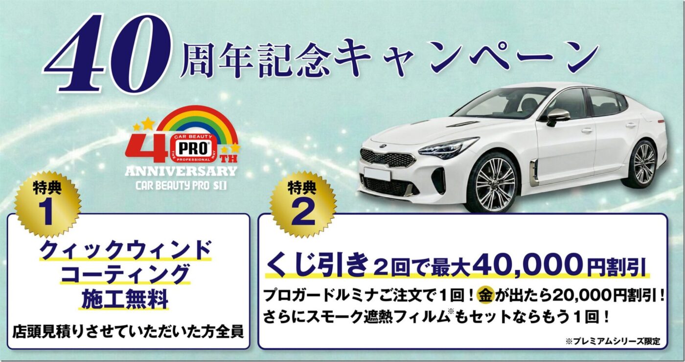 あけましておめでとうございます。 この度、カービューティープロエスアイは、お陰様で創業40周年を迎える運びとなりました。これもひとえに、長年にわたり弊社を温かくご支援くださったお客様、並びにお取引業者様の日頃からのご愛顧..