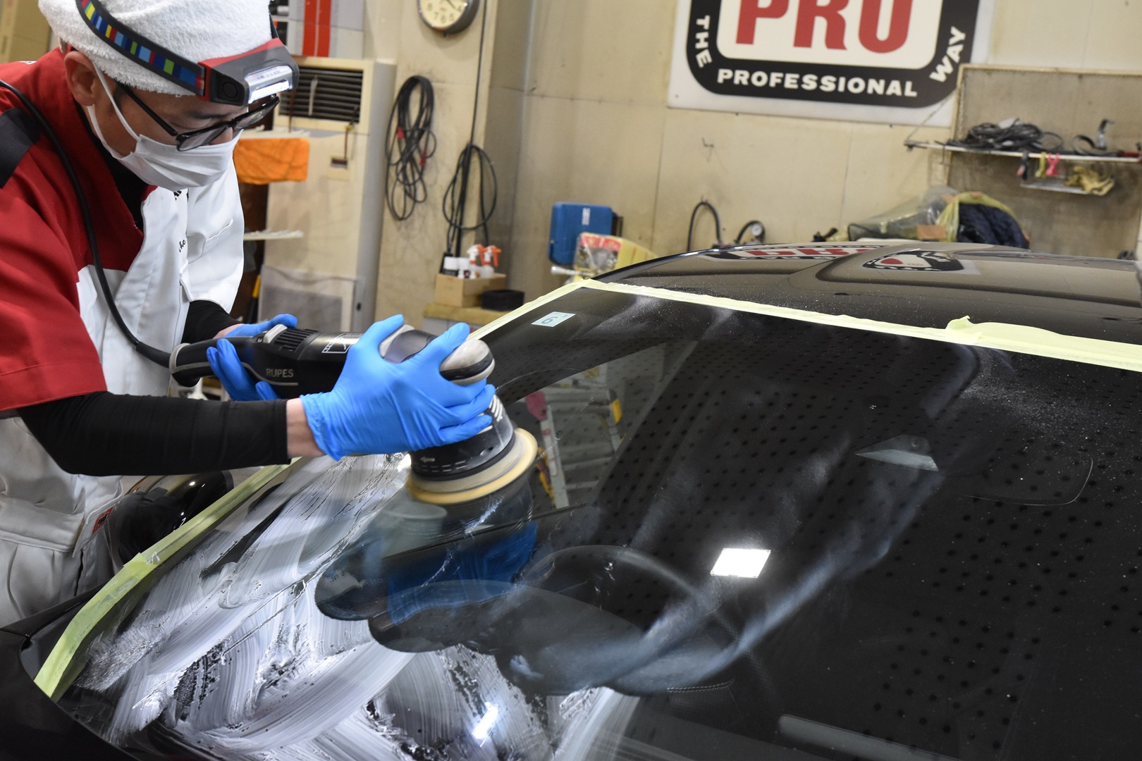 きっちりガラス表面を研磨することで、ウィンドコーティングの性能をフルに引き出すことができます。