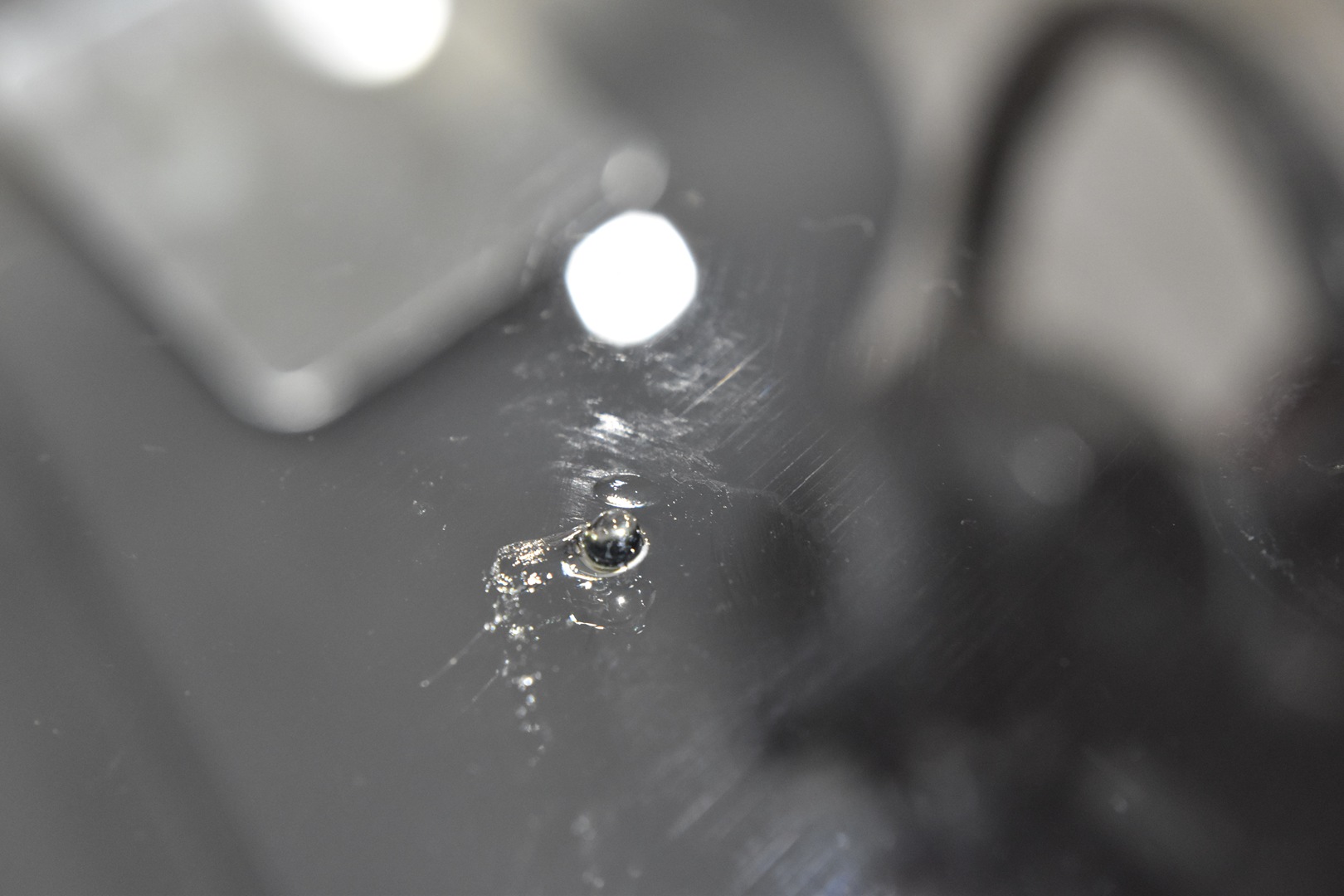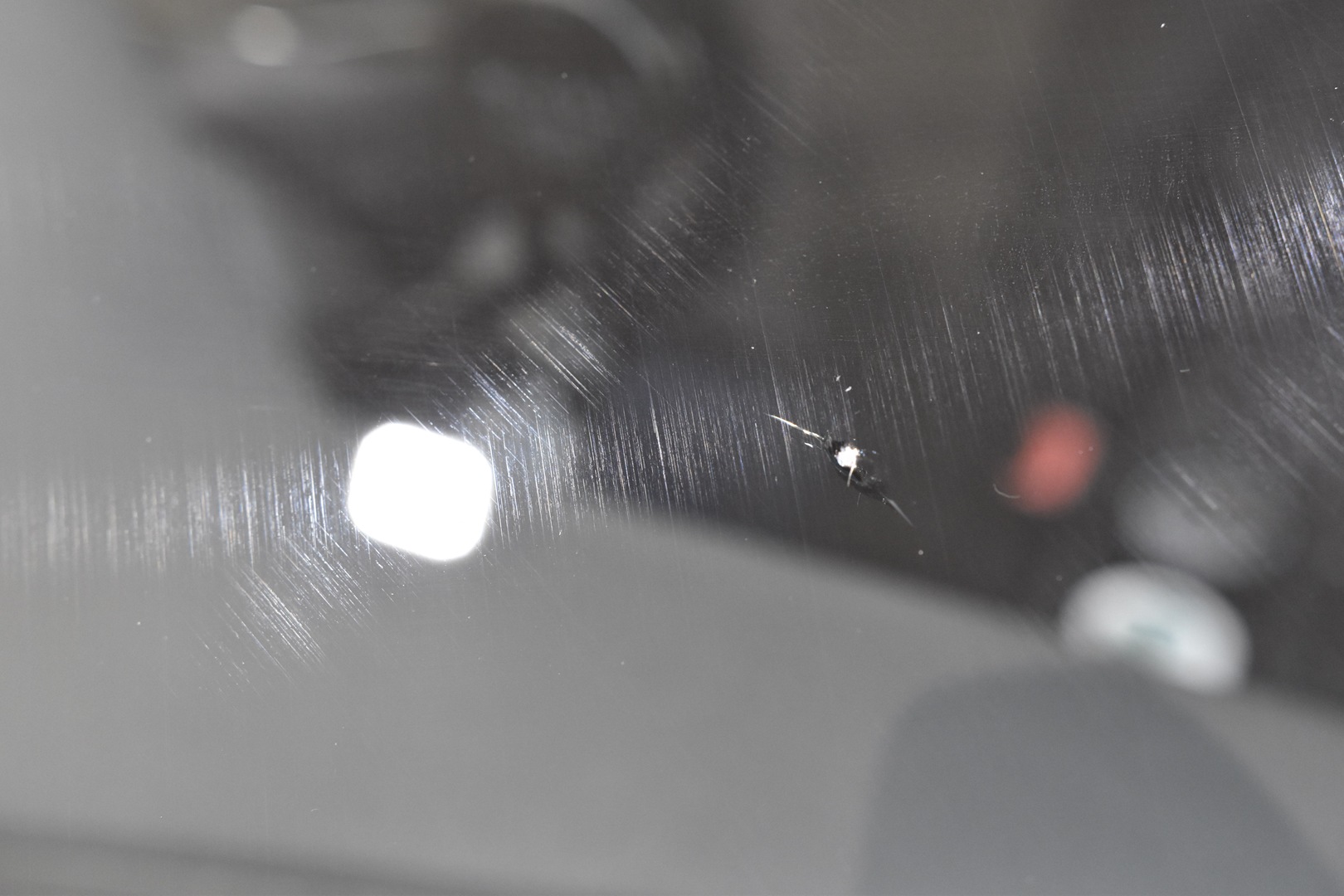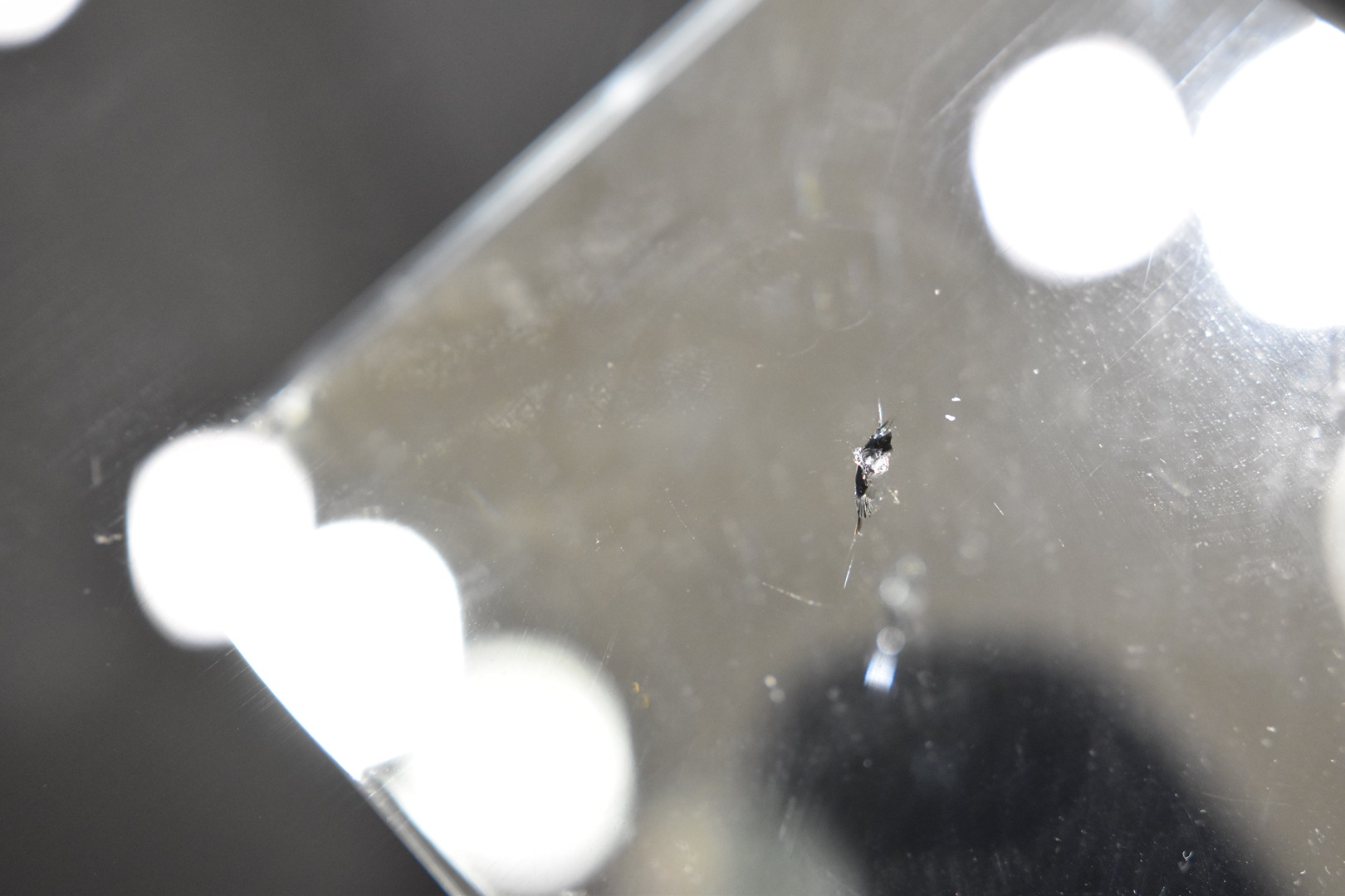衝撃点にドリルで穴を開けてから、ヒビの内部を少し割っています。