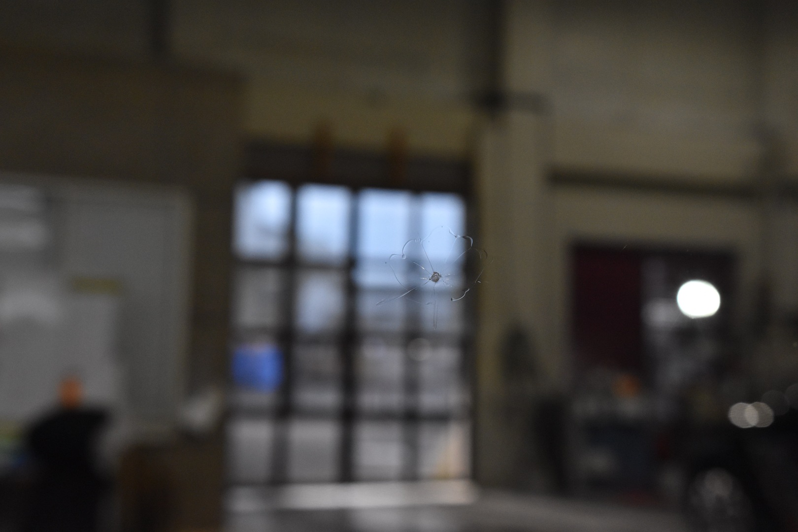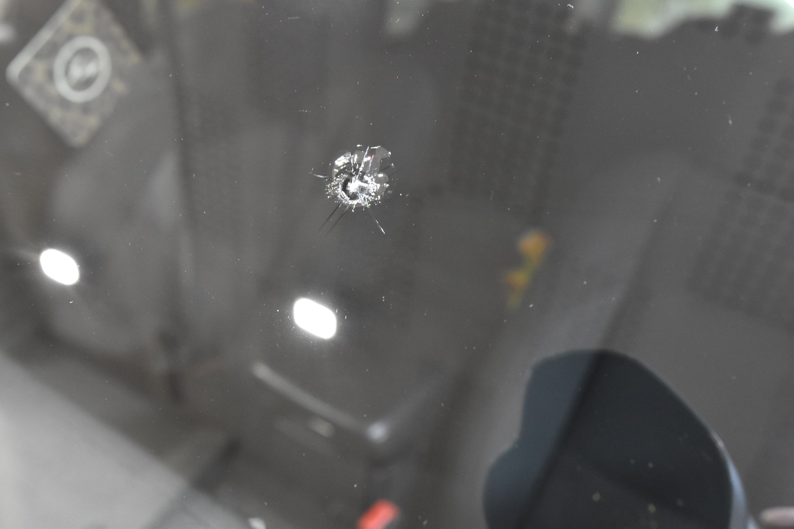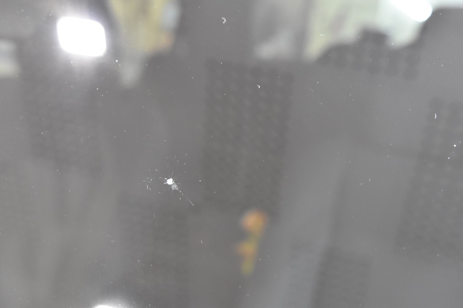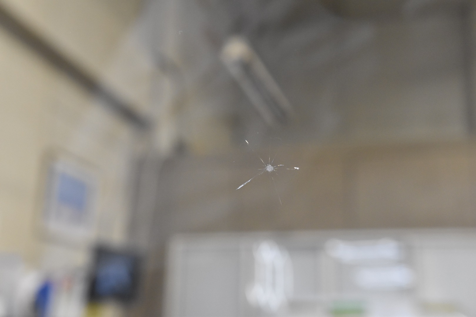 当たった衝撃が大きく、複合型のヒビになっています。