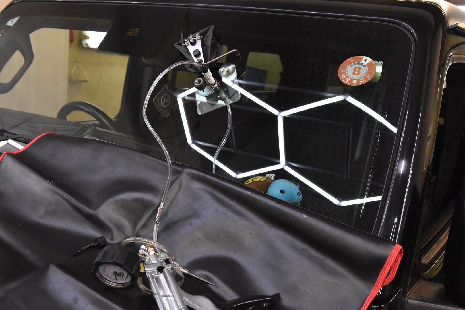 これの最大の特徴は、車内側からレジンを硬化させることができるんです。