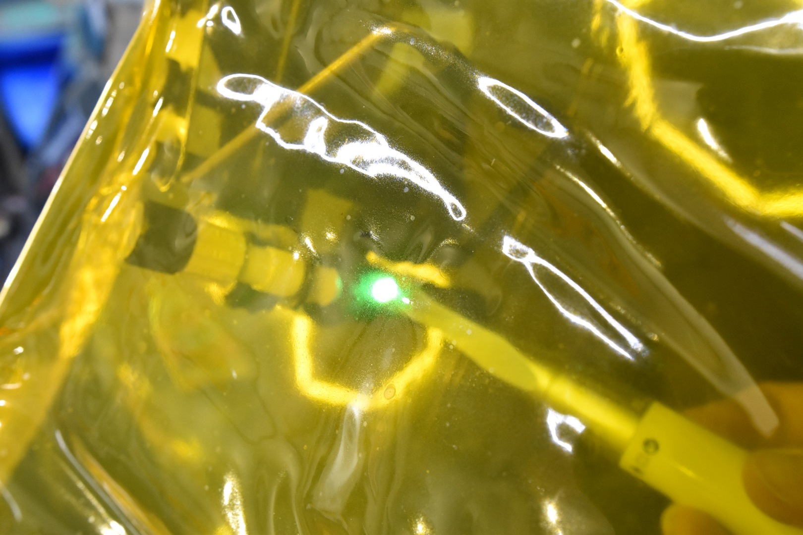 可視光線硬化型レジンは、加圧状態のままガラス内側から可視光線ランプを照射し硬化することが可能。