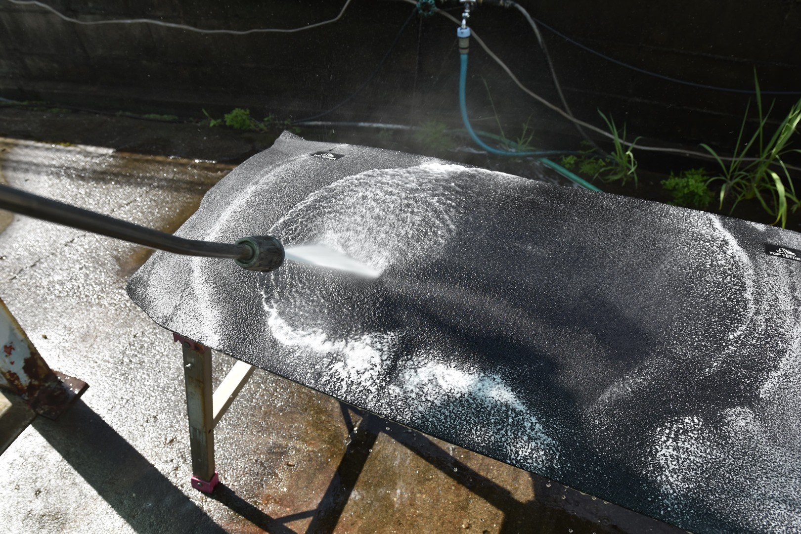 トランクのマット部分は高圧洗車ガンで洗い流します。