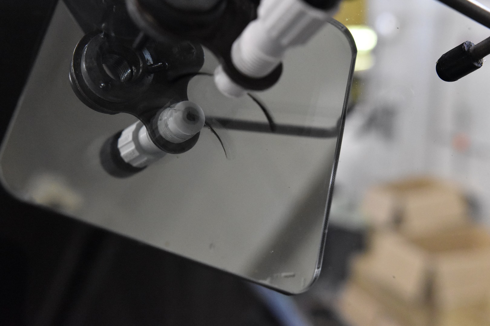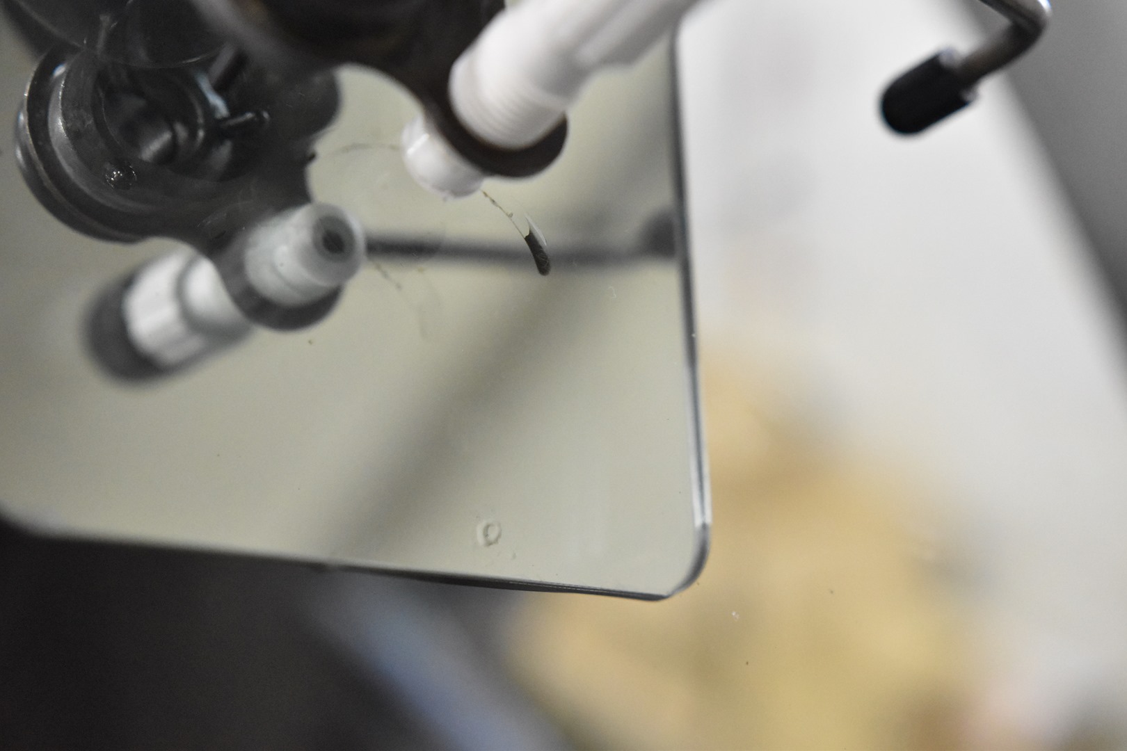 そのまま見えるヒビと、ミラーに映っているヒビ、両方をご覧ください。