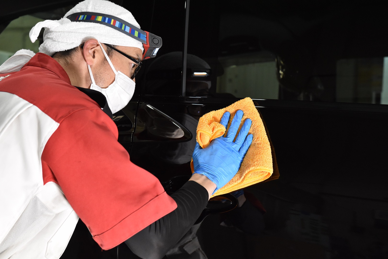 翌日に撥水チェックのための洗車を行ってから、研磨処理を行います。