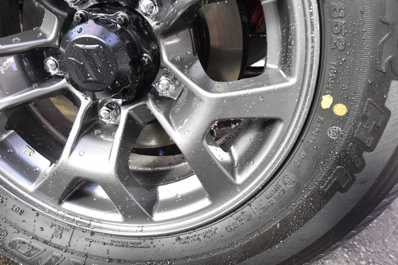 脱脂洗車の時にホイールコーティングの撥水チェック。