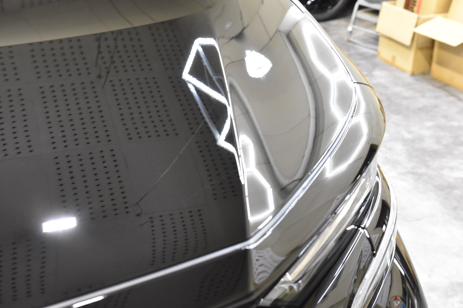 高演色LEDで塗り残し、拭き残しが無いようにしっかりチェックを行います。