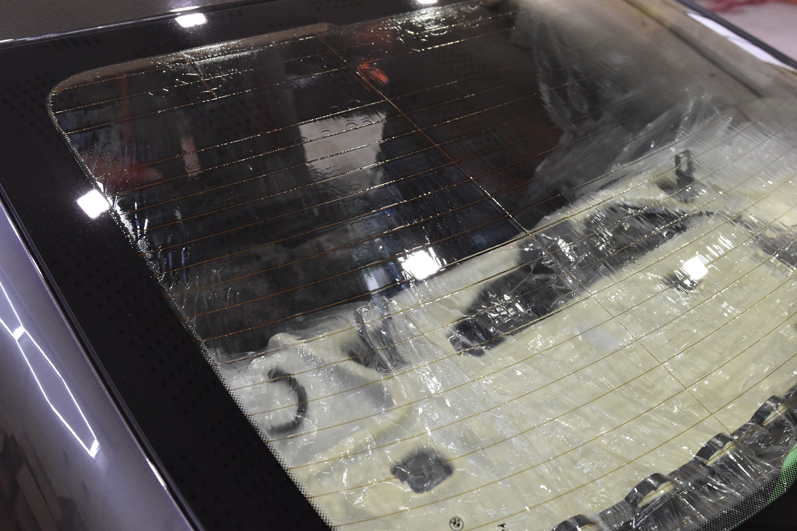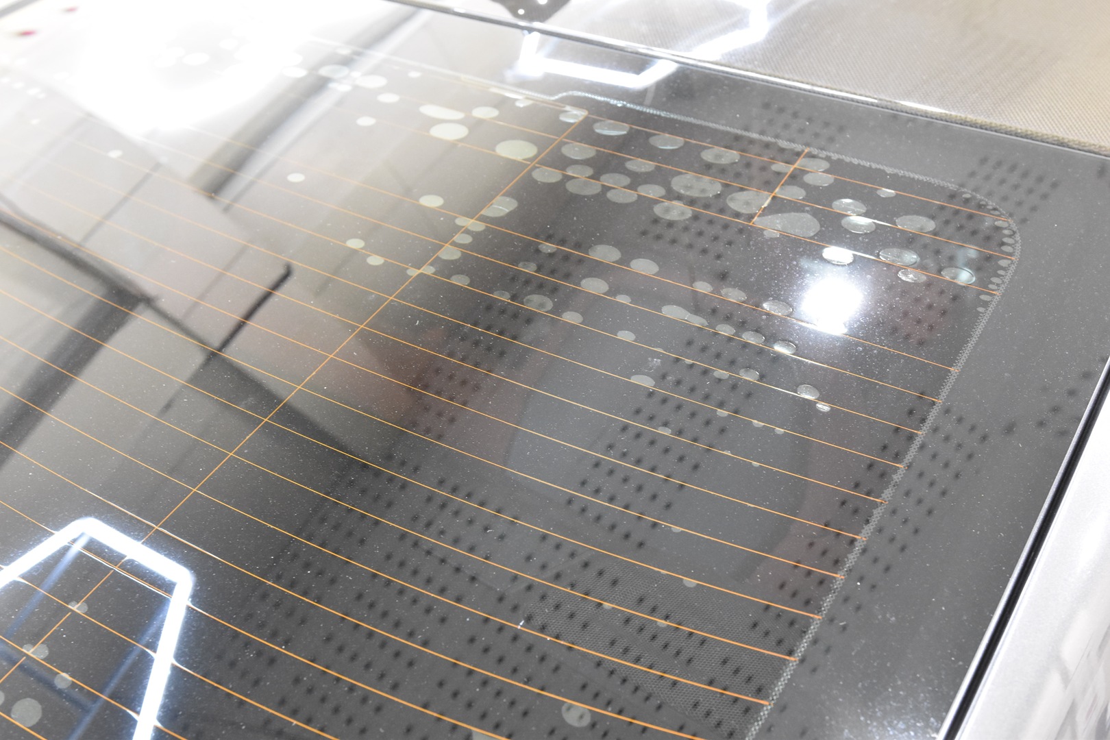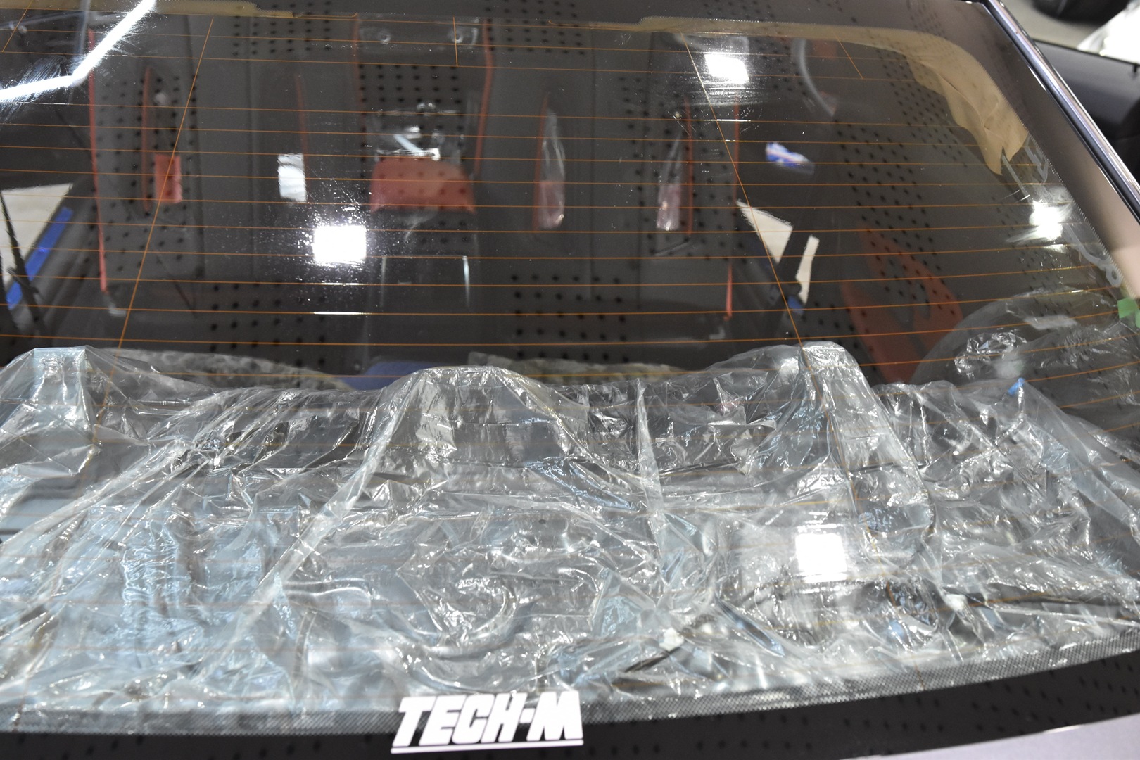 リアガラスにスモーク遮熱フィルムのプレミアムシリーズ、HCD-20Gを貼らせていただきました。