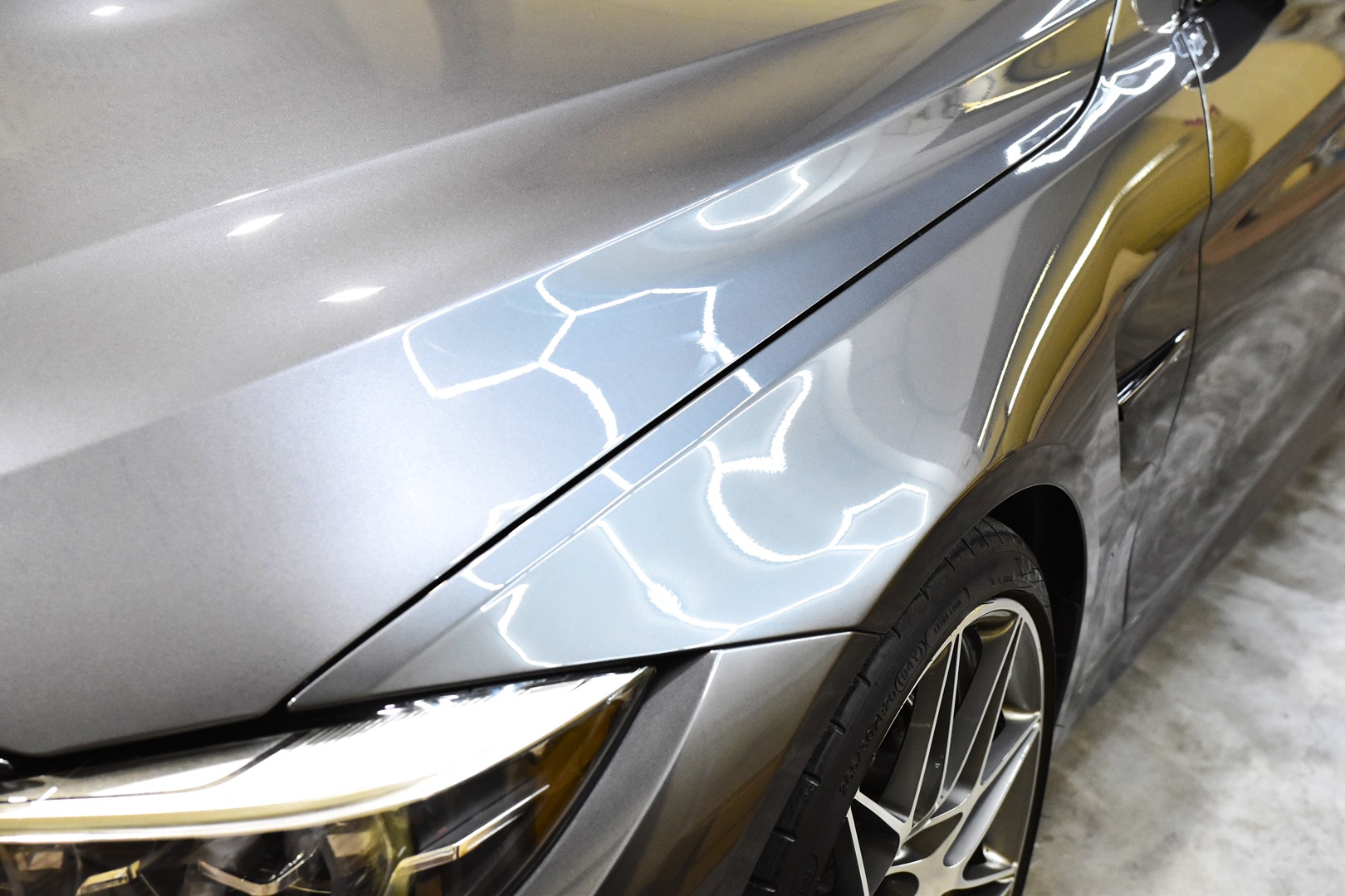 再生研磨で、塗装面のダメージと古いコーティング被膜を剥がしていきます。