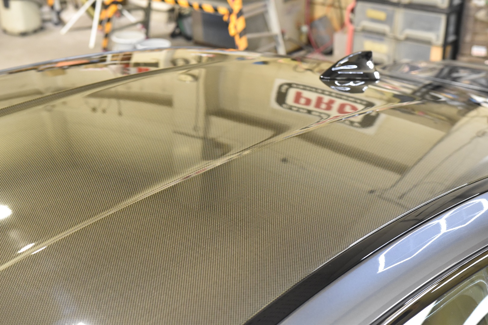再生研磨で塗装をリセットした後は、脱脂洗車の後にいよいよコーティング施工です。