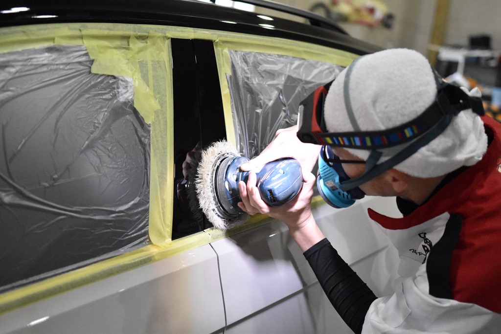 早速ボディの塗装状態を確認させていただくと、経年車なので洗車傷のダメージが深刻です。 しかし、ハリアーに限らず、黒のソリッドを綺麗に維持することは、本当に難しいんです。