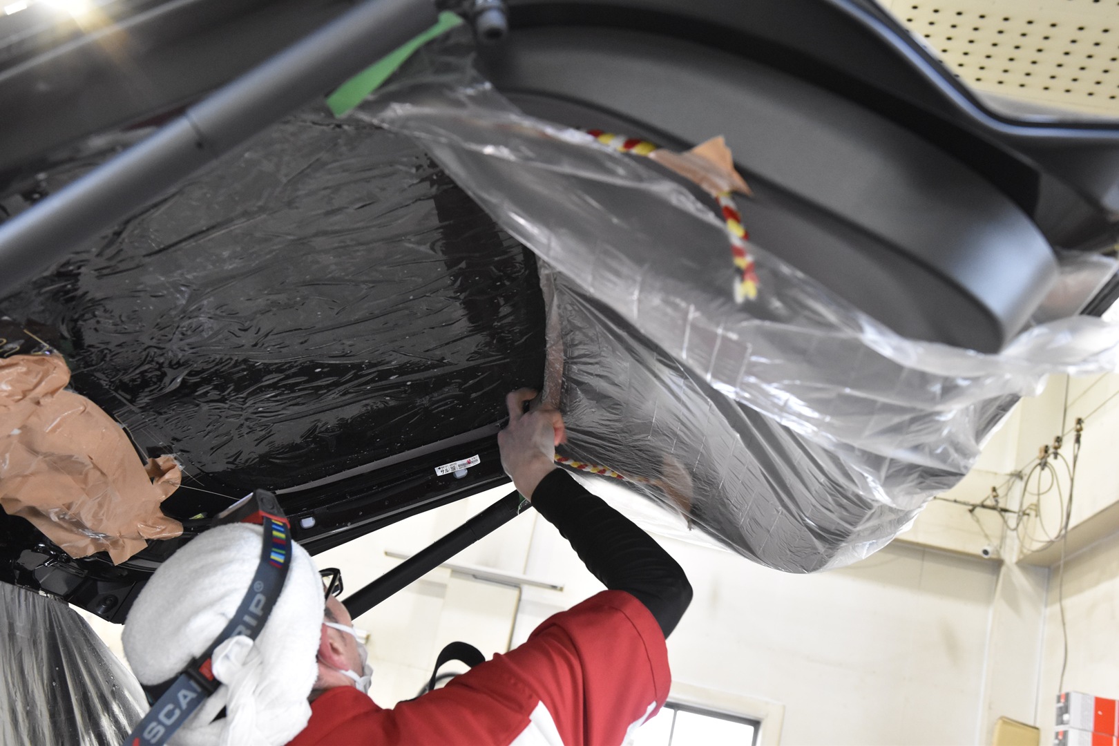 最近はリアゲート内部に電装品が多く、養生に最も気を使います。