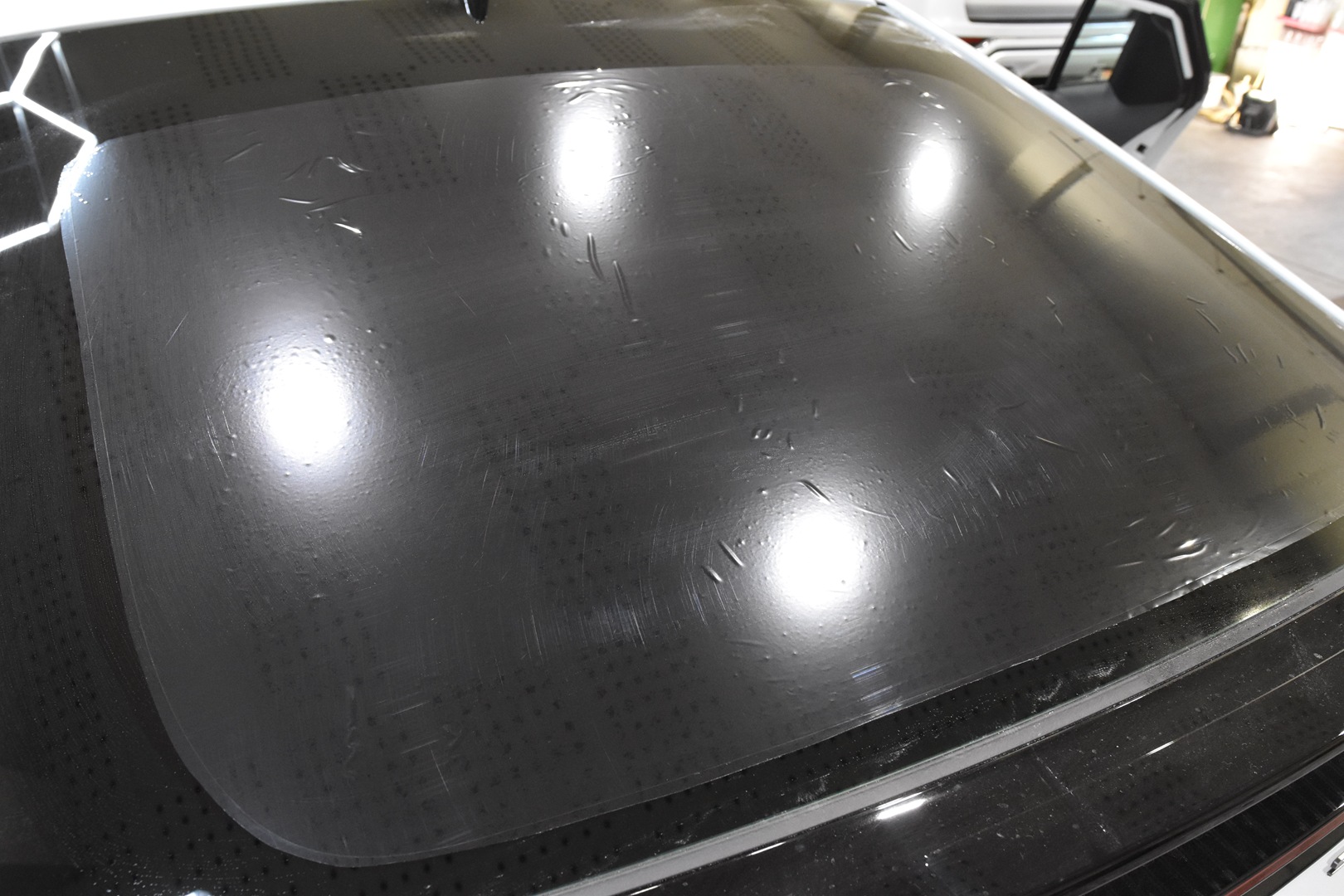 リアガラスの窓は湾曲しているので、そのままフィルムを貼ることはできません。