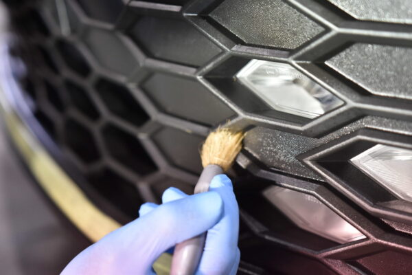 樹脂パーツへのコーティング。 細部は筆で塗り込みます。 ボディーと一緒に施工で...