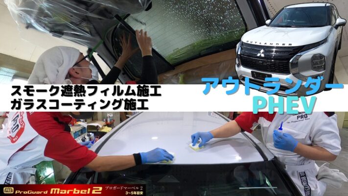 アウトランダーPHEVにコーティングとスモーク遮熱フィルム施工