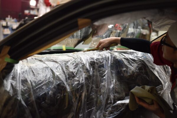 ドアガラスで外せるものは外して施工します。 今回施工したクリスタリン90は、透明...
