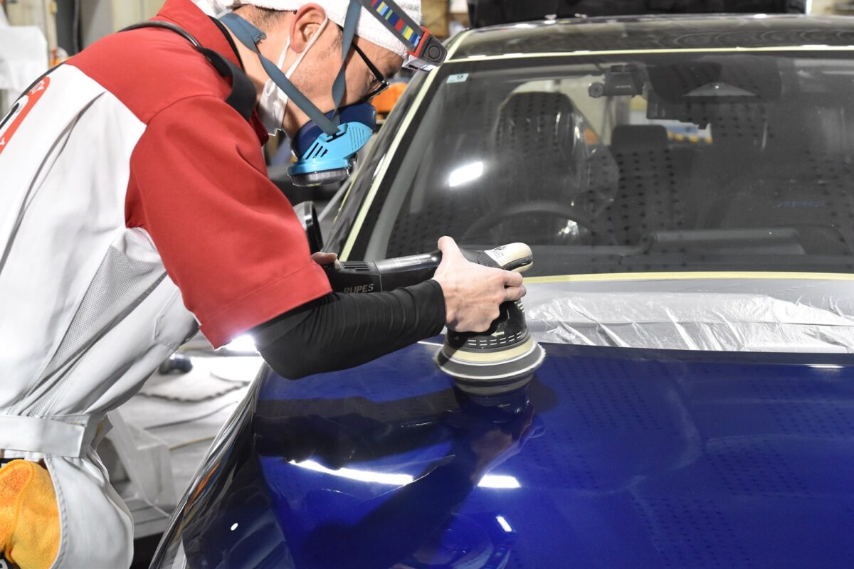 ウィンドコーティング施工中。 フロントガラスのサイズがかなり大きいので、二人で分担して作業しています。 翌日に撥水チェックのための洗車を行ってから、研磨処理を行います。 黒のソリッドは、雑に触ればすぐに傷がつくほどデリケ..