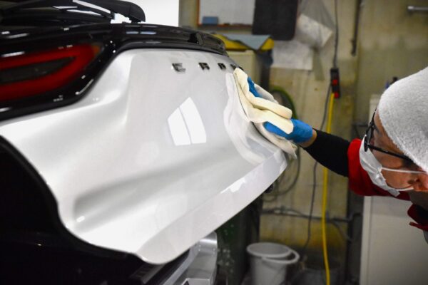 常連様が新たにご購入されたシビックのtype-R。 磨きたくない部分を養生しながら、研磨処理を進めていきます。 それぞれの素材によって塗装の硬度は違うので、研磨工程も適宜変更していきます。 この辺りは、熟練であるがゆえの..