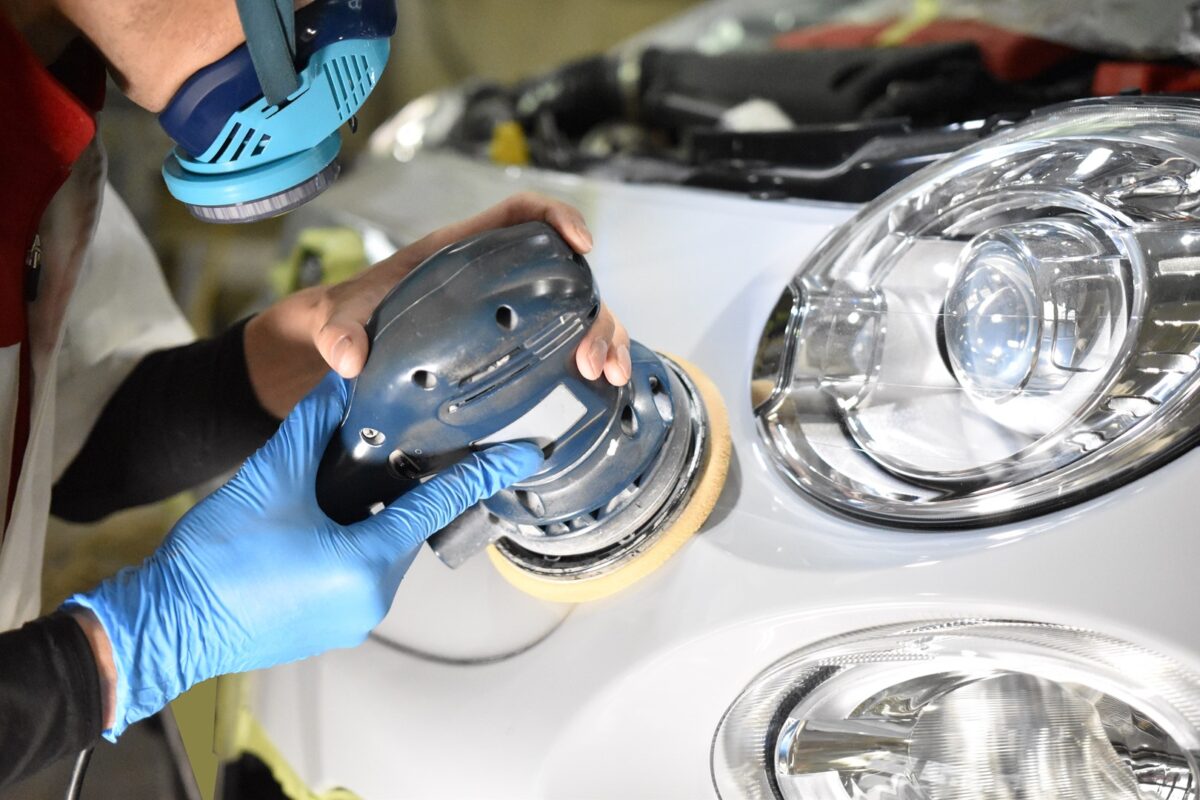 研磨前の状態は洗車傷やシミによるダメージで光沢も鈍く、あまりパッとしませんね。 完全に綺麗にするには、ペーパーでハードコートを完全に剥がして、PPFを貼るのがベストなんでしょう。 今回はサービスなので、軽研磨だけで軽く綺..