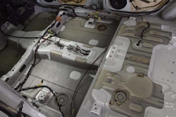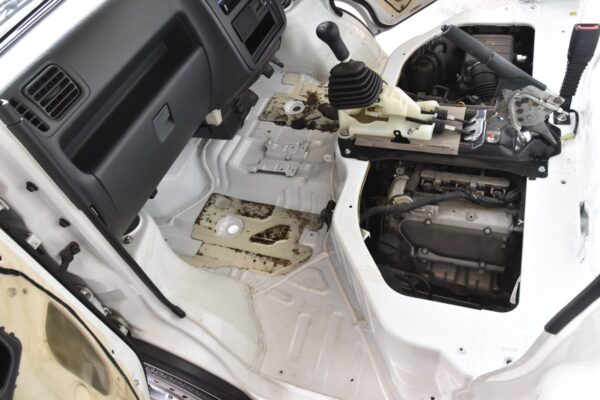 田んぼに突っ込んでいるので、ガラスのゴムモールも泥だらけ。 これは脱着して丸洗いするしかありません。 ドア自体も洗っています。 底に泥がだいぶ溜まっていましたね。 もちろんフロアの鉄板も丸洗い。 樹脂パーツの裏まできっちりクリーニング...