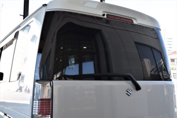 納車前にフィルムのご注文をいただいたスペーシアギア。 リアガラス全面に一番濃いスモーク遮熱フィルムを施工させていただきました。 SIは通常のスモークフィルムでも遮熱機能付きです。 これが有ると無いとでは、エアコン効率が大きく変わってきます...