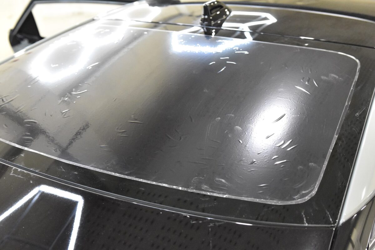 施工前は車内が丸見え。 内装を取っ払ったのも丸見えですね(笑) 熱成型前はこんな感じ。 ガラスの湾曲はそこまで大きくないですね。 熱成型完了。 ここからフィルムのインストール開始です。 ガラスの清掃中。 フィルム施工には..