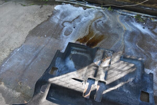 トランクに置いていた灯油がこぼれたということで、クリーニング&消臭のご注文をいただきました。 ちょっとこぼれただけでも、フロアにこぼれてしまうとアウトです。 この茶色になっているのが灯油です。 メルシートというフロアの鉄板に貼りつけている...