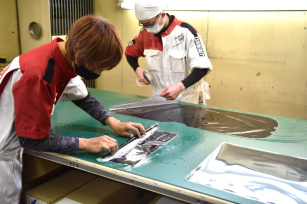 先輩のフィルム施工の動きを研究中。 歴代のスタッフの中でも抜群にセンスがいいです。 というわけでリアガラス全面にスモーク遮熱フィルムを貼らせていただきました。 一番濃い3%の透過率なので、貼ると真っ黒ですね。 施工前はこれだけ透け...