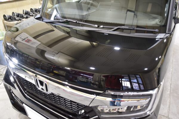 コーティングのご注文をいただいたN-BOX完成です。 このまま一晩作業場で被膜を完全硬化させます。 磨き屋泣かせと言われるホンダの黒。とにかく塗装が柔らかいので、傷を取るのは簡単です。 問題はそこからバフ目と呼ばれる研磨傷を入れずにどれだ...
