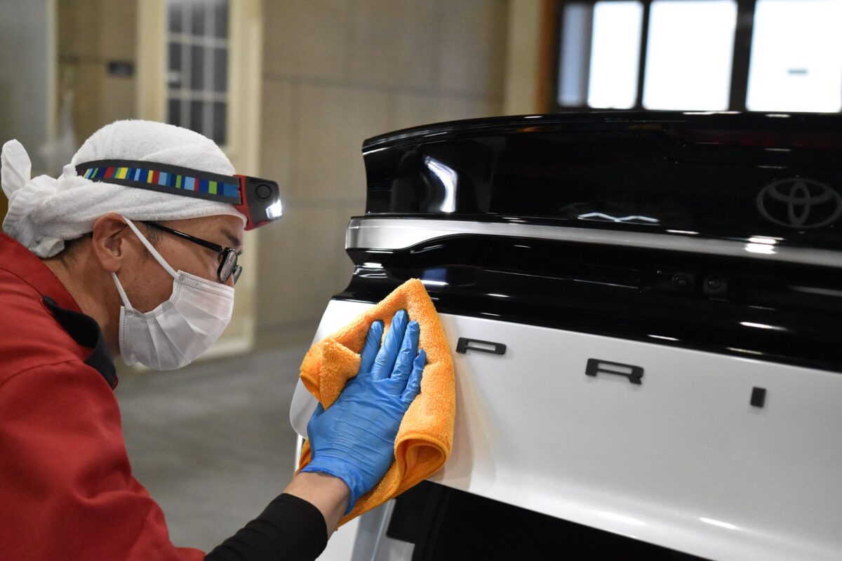 コーティングの拭き取り中。 最近は2層式のコーティングがほとんどなので、作業量は2倍になります。 当然ながらマイクロファイバーの使用量も2倍。 パールの塗装は洗車傷も見えにくいのですが、コーティングの拭き残しも見えにくい..
