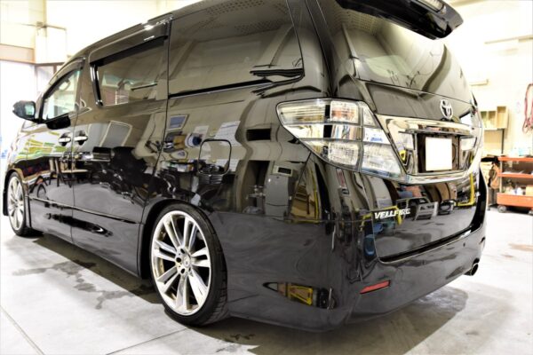 研磨処理前のヴェルファイアです。 塗装は水シミ、洗車傷、バフ目など多数のダメージで色がくすんでしまっています。 仕上がり後は漆黒の黒に復活しました。 プロガードコーティング施工させていただきました。 緻密でしなやかな被膜が、洗車傷の入る...